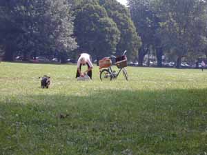 is das zu fassen! da macht der theo doch mitten auf die wiese! |
